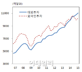 우리나라의 대외투자는 글로벌 금융위기 때 감소세를 보인 뒤 2009년부터 증가세로 돌아섰다. 올 1분기 외국인의 국내투자는 1조 236억달러로 한국의 대외투자가 805억달러 더 많았다. 특히 지난 2014년 9월 처음으로 갚을 돈인 대외금융부채보다 받을 돈인 대외금융자산이 더 많은 순자산 국가가 된 후 3분기 넘게 그 지위를 유지하고 있다.