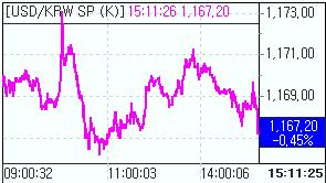 9일 서울외환시장에서 달러-원 환율은 전일대비 5.40원 하락한 1167.40원에 마감했다. 종가기준 1160원선으로 내려선 것은 지난 8월10일 이후 약 한달만에 처음이다.