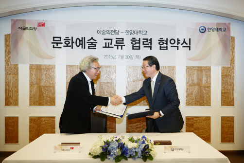 이날 협약을 통해 양 기관은 예술의전당의 우수 문화예술행사를 효과적으로 진행·홍보하고 한양대의 문화예술분야 교육프로그램 개발과 예술전공생의 현장 체험 기회 발굴에 협력키로 했다.