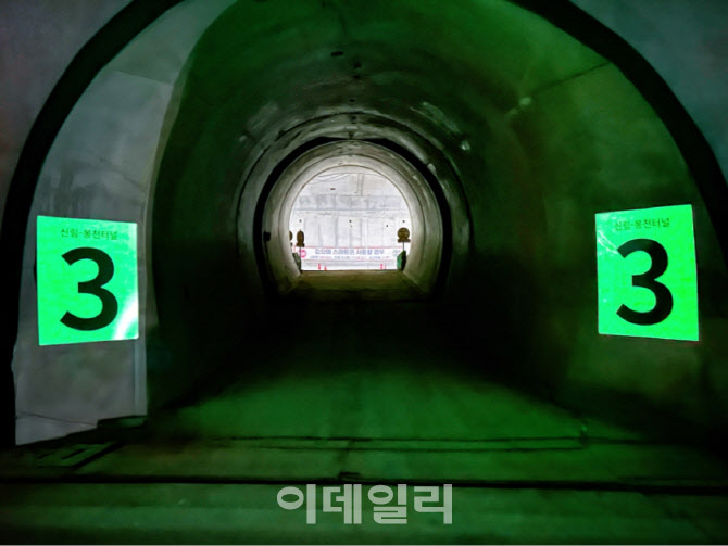 | | KCC의 축광도료 ‘루미세이프’를 시공한 서울 ‘신림-봉천 터널’ 모습. (사진= KCC) |