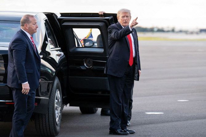 | | 2일(현지시간) 플로리다주 마러라고 사저에서 주말을 보낸 후 백악관으로 돌아가고자 에어포스원(대통령 전용기) 탑승을 앞둔 도널드 트럼프 미국 대통령. (사진=AFP) |