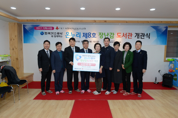 [이데일리 김일중 기자]한국가스공사는 23일 대구광역시 북구 선린종합사회복지관에서 장난감도서관 개관식을 가졌다.