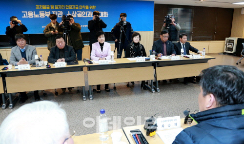 김 장관은 23일 서울 중구 서울고용노동청에서 최승재 소상공인연합회장을 비롯한 연합회 임원진 및 지역회장들과 최저임금 및 일자리 안정자금 안착을 위한 간담회를 개최했다/