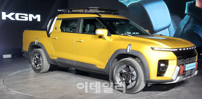 [이데일리 방인권 기자] KGM이 5일 경기 평택시 KGM본사에서 '국내 최초 전기 픽업 MUSSO EV'를 선보이고 있다.