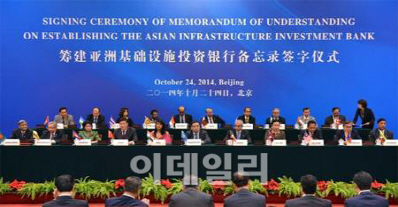 한국은 지난달 말 AIIB에 참여키로 결정했으며 11일 창립회원국으로 선정됐다. 현재 인도, 말레이시아, 싱가포르, 영국, 프랑스, 독일, 이탈리아 등 약 50개국이 가입을 신청했다. 최경환 부총리 겸 기획재정부 장관은 15일 주요 20개국 재무장관 및 중앙은행 총재 회의 등에 참석하기 위해 출국할 예정이다.