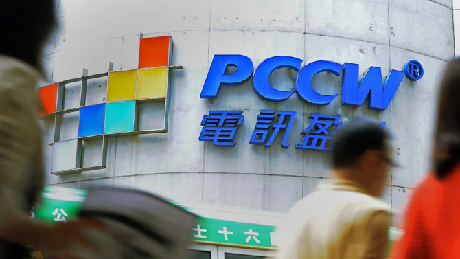 | | 홍콩에서 PCCW 표지판을 지나는 사람들.(사진=AFP) |