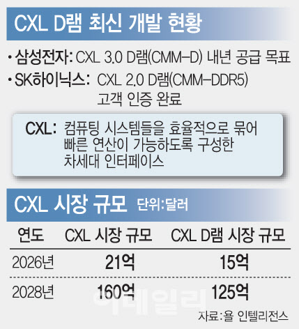 [이데일리 조민정 기자] ‘넥스트 HBM’으로 불리는 CXL 시장 개화를 목전에 두고 삼성전자(005930)와 SK하이닉스(000660)가 주요 반도체 기업들과 협업을 확대하고 있다. 주문형 반도체(ASIC) 강자로 떠오른 미국 마벨과 호환성 테스트를 완료하는 등 차세대 메모리 시장 선점에 시동을 걸고 있다. 인텔과 AMD 등 빅테크 기업들도 하나둘씩 시장에 참여하면서 CXL 시장 개화가 점차 가시화하고 있다.