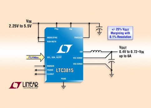 LTC3815는 더 낮은 전류 애플리케이션에 적합한 모놀리식 디바이스를 제공함으로써 PSM 컨트롤러 및 다중채널 매니저의 보급형 라인으로 구축된다. 이 제품의 입력 동작 전원 전압 범위는 2.25V ~ 5.5V 이며, 2.5V, 3.3V 또는 5V 전원이나 리튬이온 배터리에서 동작하는데 적절하다. 출력 전압은 0.4V 에서 VIN 의 72%까지 프로그램 할 수 있거나 외장 전압 레퍼런스로 설정될 수 있어, 인공지능의 에너지 전력 변환, ASIC/FPGA 전력, 분재 전력 및 PoL(point-of-load) 애플리케이션에 이상적이다.