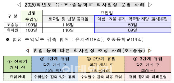 초중고 수업일수에서 휴업기간 10일 감축