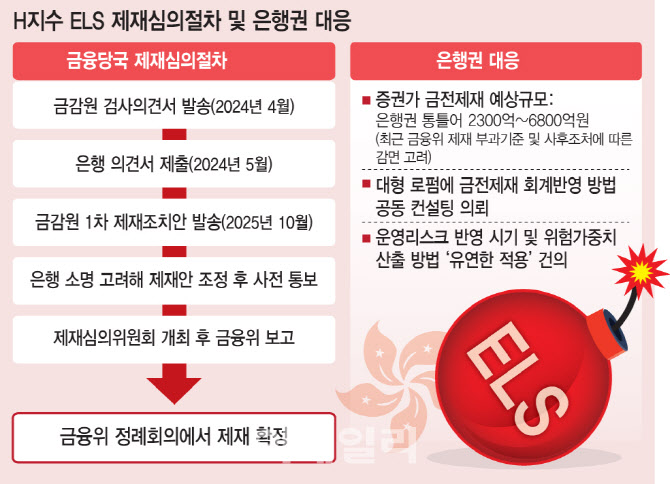 13일 이데일리 취재를 종합하면 주요 시중은행은 금감원으로부터 홍콩 H지수 ELS 일부 판매 건에 대한 1차 제재안(양정안)을 받고 해당 부서와 함께 당국에 제출할 의견서를 준비하고 있다. 금감원 관계자는 “4~5년 전 ELS 판매 당시 녹취 의무를 위반한 건 등 올해 12월 말 이전에 처리해야 하는 일부 건을 분리 처리하기 위해 사전 통지를 한 것이 맞다”며 “본 건에 대해서는 1차 제재안을 보내지 않았다”고 말했다.