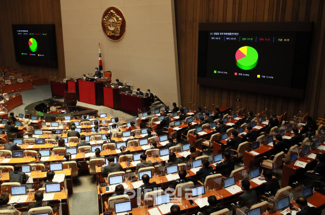 | | 9일 오후 서울 여의도 국회에서 열린 제382회국회(정기회) 제15차 본회의에서 경찰법 전부개정법률안이 통과되고 있다. (사진=노진환 기자) |