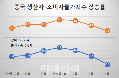 4월 생산자물가 4년만에 최저…디플레이션 우려