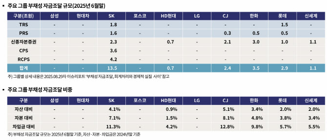 기업들이 부채성 자금조달에 나서는 건 자본성 증권의 경우 자기자본 항목에 계상되고 TRS와 PRS는 파생상품 또는 부외부채로 분류되기 때문이다. 부채비율이나 차입금 의존도 상승으로 인한 재무 레버리지 지표 악화를 걱정할 필요 없이 조달이 가능한 셈이다.