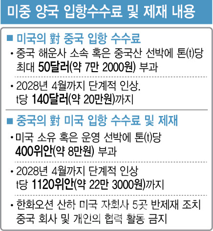 다만 중국이 향후 어떻게 제재 수위를 높일지는 관건이다. 국내 조선소와 공급망 차원에서 제재를 가할 경우에는 피해를 피하기 쉽지 않을 것으로 예상된다. 양종서 한국수출입은행 해외경제연구소 수석연구원은 “지금 당장은 피해가 크진 않을 것”이라면서도 “중국이 어떤 식으로 제재 추가 제재를 가할지 지켜봐야 할 것”이라고 말했다.