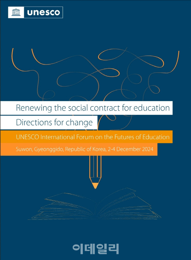 | | 유네스코가 발간한 ‘교육을 위한 새로운 사회 계약: 변화를 위한 방향’ 보고서 표지. 지난해 경기도교육청 주최로 수원에서 열린 ‘유네스코 교육의 미래 국제포럼’ 내용과 경기미래교육 정책이 집중적으로 조명됐다.(사진=경기도교육청) |
