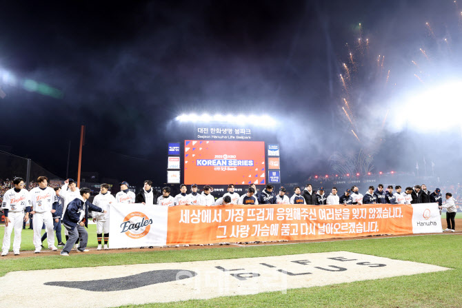한화이글스는 올 시즌 정규리그에서 2위를 기록하며 7년만에 포스트시즌에 진출했고, 19년 만에 한국시리즈 무대에 서는 쾌거를 이뤘다. 플레이오프에서는 짜릿한 승리로 팬들에게 뜨거운 감동을 선사했으며, 한국시리즈에서도 끝까지 포기하지 않는 투혼을 발휘했다.