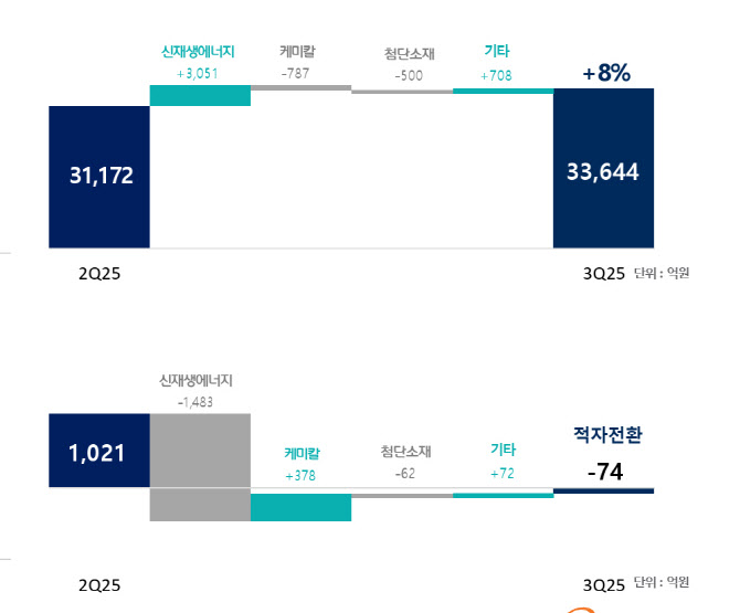 첨단소재 부문은 매출 2579억원, 영업이익 36억원을 기록했다. 경량복합소재 주요 고객사의 하계 운휴 영향에도 태양광소재의 저수익 시장 판매 조정, 미국 공장 원가 구조 개선을 통해 흑자를 유지했다.