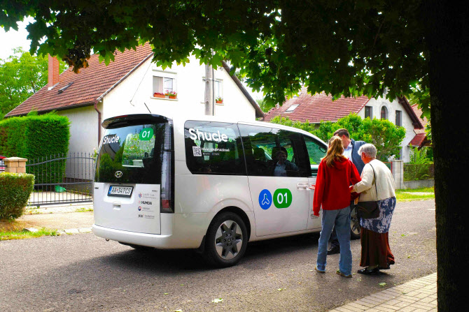 헝가리 괴될뢰시에서 진행된 셔클의 ‘헝가리 수요응답교통 서비스 시범사업’ 장면. (사진=현대차그룹)