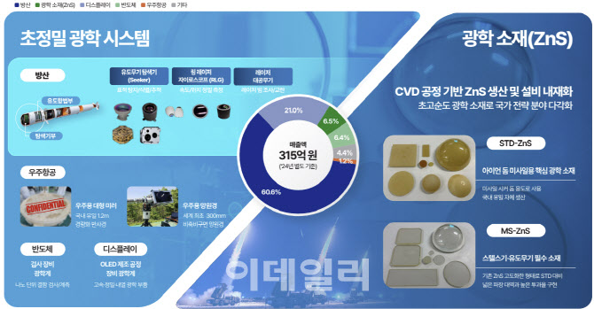 조 대표는 “특히 전 세계 10여 개 기업만 구현 가능한 전략물자 황화아연(ZnS) 생산 기술을 10년 연구 끝에 확보했다”며 “화학기상증착(CVD) 공정을 기반으로 한 자체 생산 체계를 구축해 방산·우주항공 등 국가 전략 분야로 활용 범위를 넓혀가고 있다”고 강조했다.