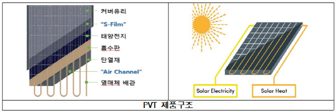 | | 전기와 열을 동시에 만드는 결정질 실리콘 태양광 열(PVT) 복합 모듈 제품 구조. (이미지=산업통상부 국가기술표준원) |