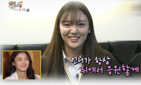 4일 방송된 KBS2 ‘해피투게더3’는 ‘먹고 또 먹고’ 특집으로 꾸며진 가운데 가수 김태우, 홍진영, 걸그룹 미쓰에이 페이, 개그맨 김준현이 출연했다.