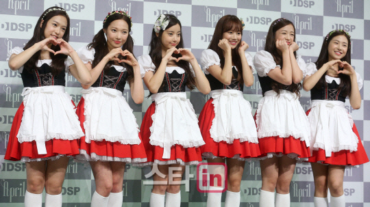 에이프릴은 핑클 카라 레인보우 등을 발굴한 DSP미디어에서 지난 8월 데뷔시킨 6인조 걸그룹. 현재 활동 중인 걸그룹 가운데 나이가 가장 어려 관심을 모았다.