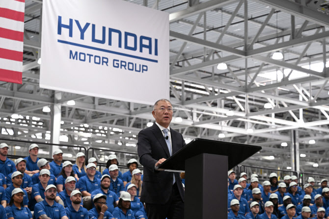 | | 정의선 현대차그룹 회장이 지난 3월 26일(현지시간) 미국 조지아주 ‘현대차그룹 메타플랜드 아메리카’ 준공식에서 연설하고 있다 (사진=현대차그룹) |
