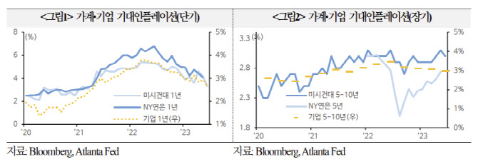 보고서를 작성한 박미정 국금센터 부전문위원은 “미국 기대인플레 수준이 전반적으로 낮아지는 추세이나 장단기 기대인플레이션의 차별화 양상은 서비스 부문을 중심으로 한 기조적 물가 압력이 여전함을 방증한다”고 밝혔다.