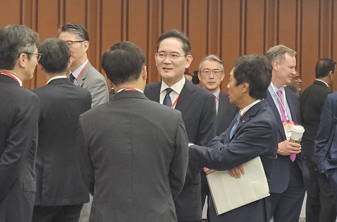 | | 이재용 삼성전자 회장이 15일 일본 도쿄 게이단렌(경제단체연합회) 회관에서 열린 한미일 경제대화에서 참석자들과 이야기를 나누고 있다. (사진=연합뉴스) |