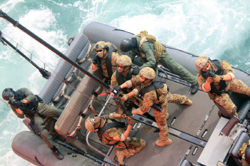 육·해군 특공대 합동팀, 사격도 1등..`해양 대테러 훈련`