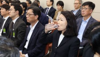 국정감사, '물 마시는 이진숙 전 방통위원장'